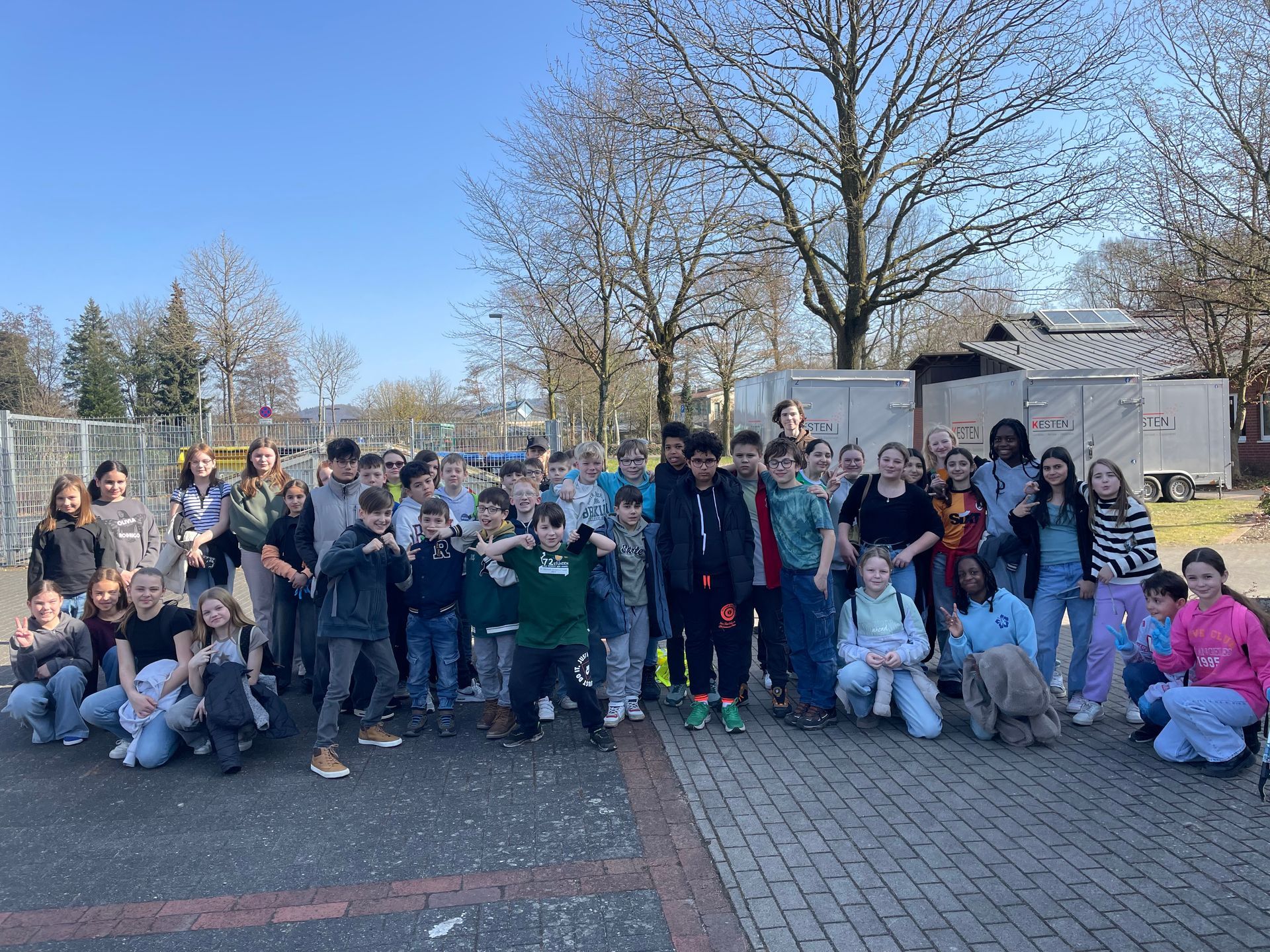 Und nicht nur hoch motivierte Schüler, sondern auch Profi-Ausrüstung waren am Start. Niklas, Christoph und Tyron aus der 6b kamen mit einem Kettcar inklusive Anhänger angefahren. Sie verschwanden im angrenzenden Himmelreich und kamen nach zwei Stunden mit drei Säcken Müll zurück. LOL 😉